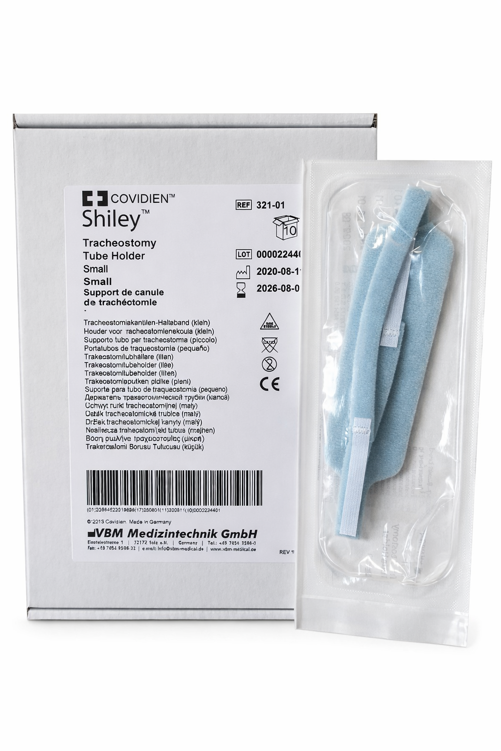 Fascia di fissaggio per cannule tracheostomiche, utilizzabile con qualsiasi tipo di cannula. Unica dimensione, regolabile facilmente per adattarsi alla maggior parte dei pazienti, da bambini ad adulti (con una dimensione del collo fino a 18"). Cotone imbottito in schiuma per il comfort del paziente.