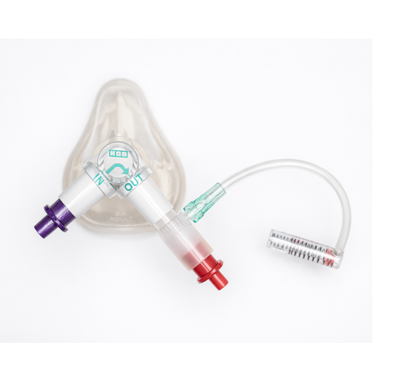 Il manometroECO, incluso nel kit, consente il monitoraggio della pressione durante la terapia. Gli esercizi si eseguono con valvola, resistenze colorate e maschera o boccaglio.